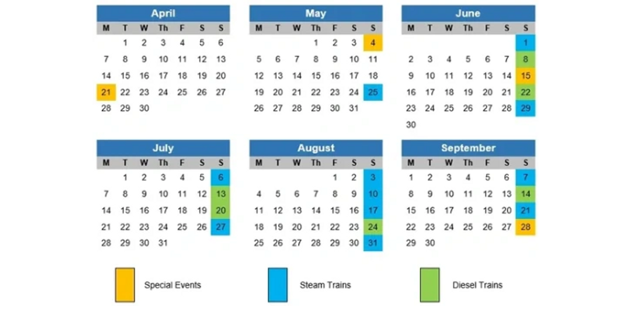 We are a heritage railway and, while most of our trains are steam hauled, we may change to our heritage diesel locomotives. This may be due the weather, old engines and other factors that mean we have to make changes.